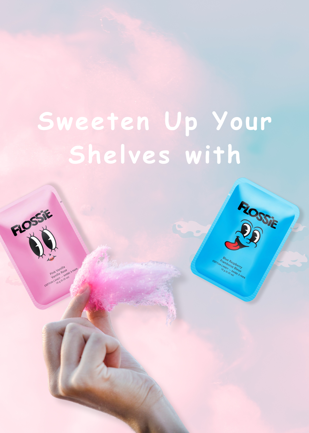 Flossie redéfinit la barbe à papa comme une gourmandise délicieuse avec un goût et une esthétique haut de gamme. Voici ce qui rend Flossie unique